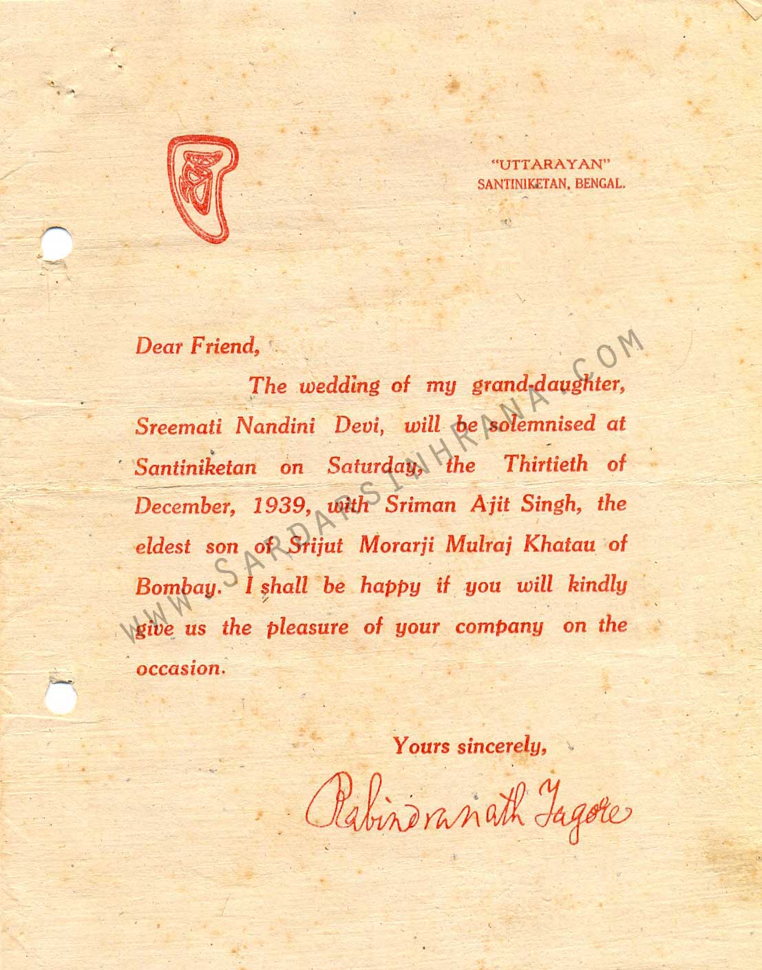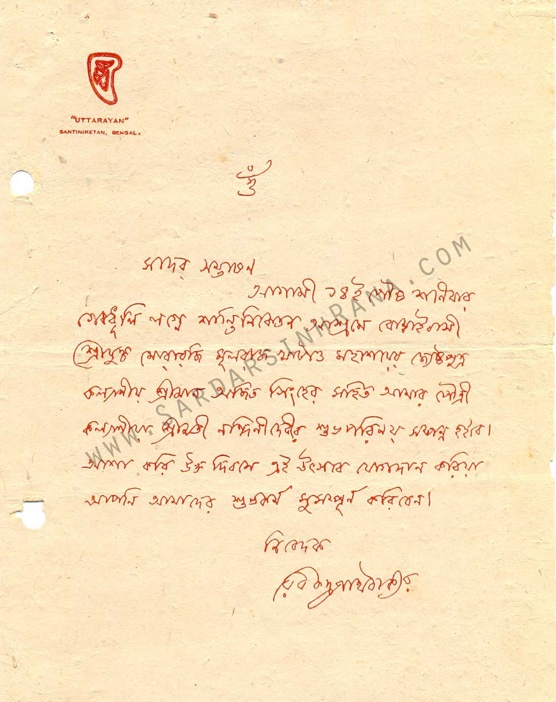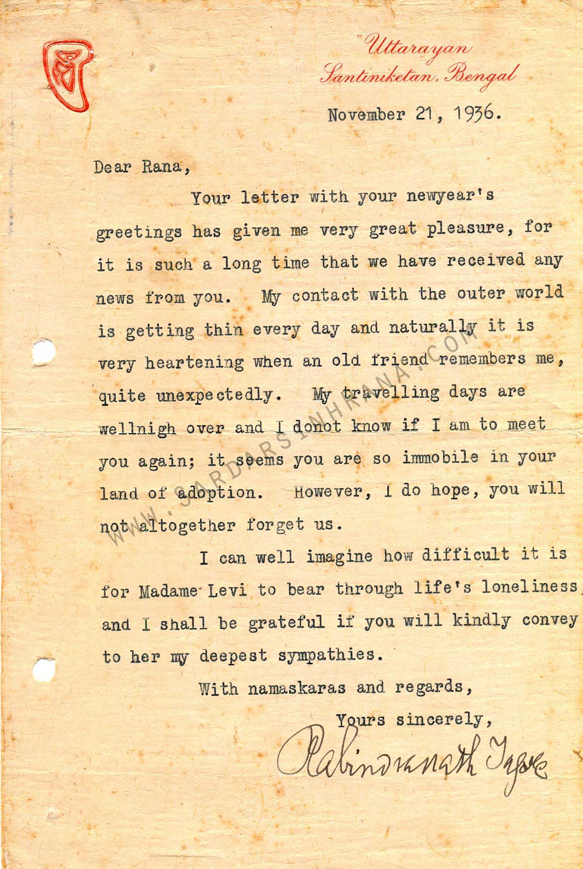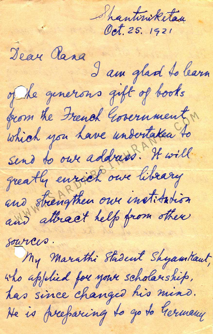 FOUND ON THE OFFICIAL WEBSITE OF S. R. RANA: LETTERS BY RABINDRANATH TAGORE TO S. R. RANA: